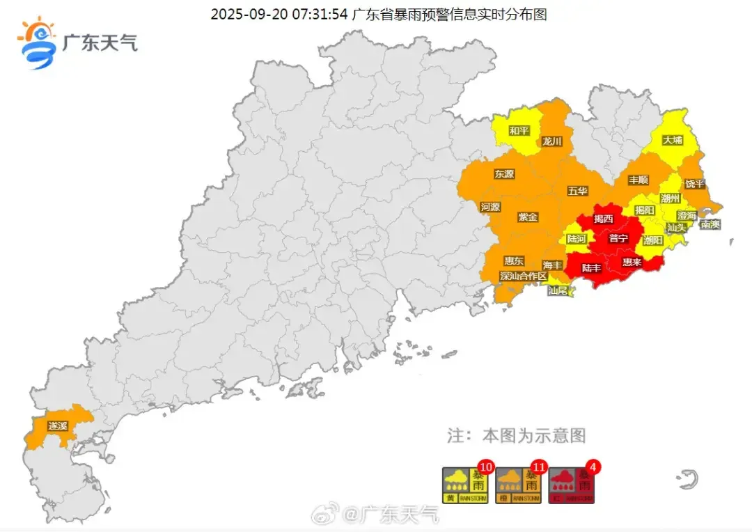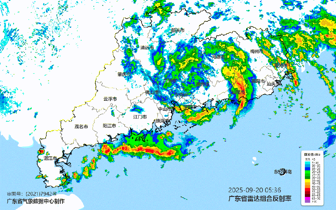 广东省时局台展望,9月20日,广东中南部市县仍有暴雨局部(特)大暴雨,南海北部海面和广东中东部海面风力6~7级阵风8级冉冉松开到5级阵风7级。