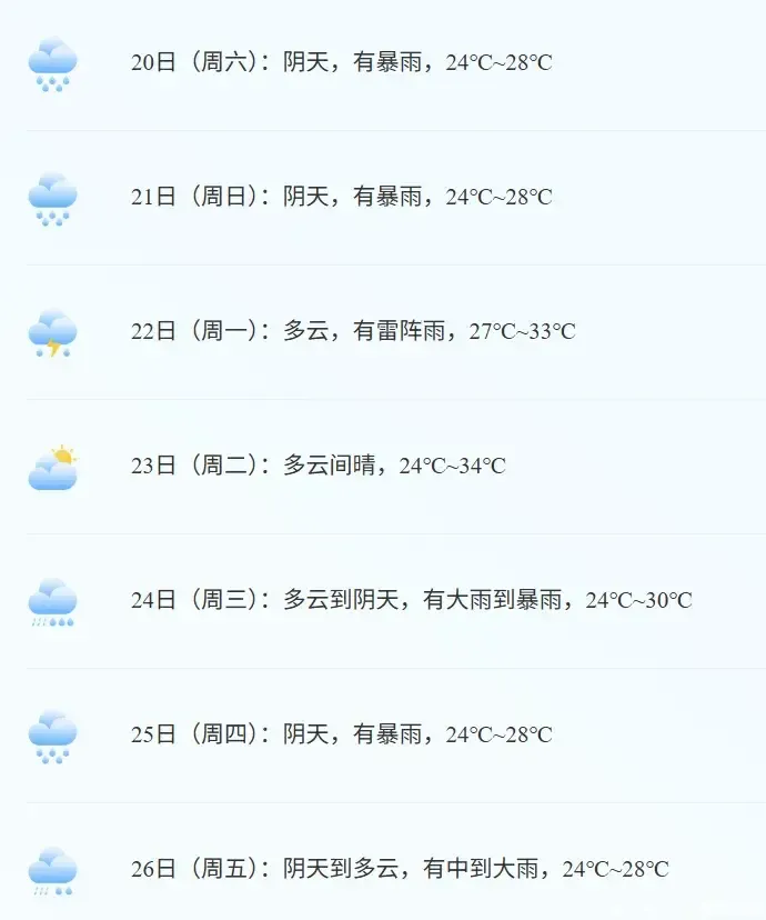 21日,粤西和珠三角西部市县中到大雨局部暴雨,其余市县多云有阵雨局部大雨。